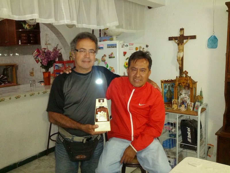 A Hebe chegou cedo e, gentilmente, nos preparou um desayuno. O Ricardo chegou em seguida para se despedir dos brasileiros aventureiros e, se não bastasse toda gentileza e recepção, ainda me trouxe uma garrafa de uma excelente tequila. Como não havia mais lugar na moto, com tristeza agradeci e levei apenas a foto, acompanhada de um abraço carinhoso de um novo e bom amigo.